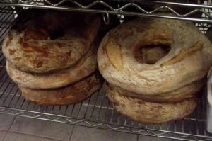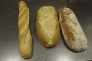 How to tell a true hand crafted bread. First look at the ingredients. There shouldn't be anything in bread besides flour, water salt and yeast. Flavored breads may list other recognizable ingredients like nuts, garlic, herbs or cheese. All of the ingredients should sound like familiar foods. Remember you are buying one of the oldest most basic foods there is. Next think about the place that the bread was made. In a small artisan bakery the baker will often show you around. If the bread is made in a large factory you might not get past the front gate. An artisan bakery is small enough that it is possible to train each worker to understand the whole process of making the bread and to make small enough batches for one or two people to manage. Each hand crafted loaf will have it's own unique, irregular shape.